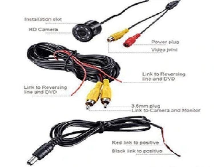 دوربین دنده عقب بهمراه کابل RC,کابل برق,پایه نصب روکار,پیچ پایه و گردبر