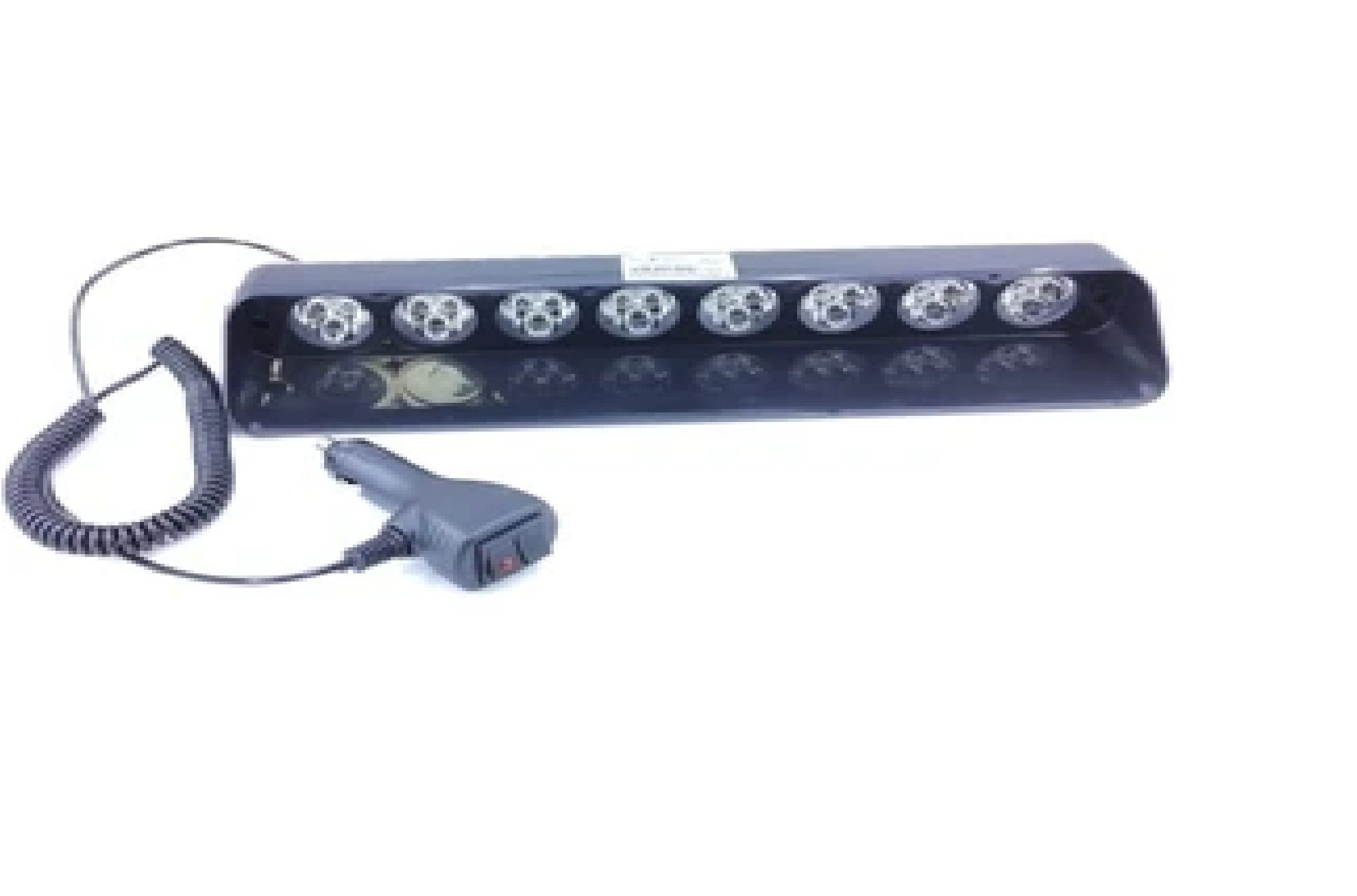 چراغ پلیسی رو داشبوردی باطول 33 سانتی متر مناسب برای خودرو های امدادی، گشت های انتظامی و خودرو های نامحسوس بوده، تا در داخل و خارج شهر برای جلب توجه بیشتر برای انجام ماموریت های خود از این وسیله بهره گیرند. این محصول دارای 8 عدد ال ای دی 3 تایی پر نور با توان 10 وات بوده که به رنگ های آبی و قرمز می باشد. این محصول دارای 1 پایه با 4 پستونکی می باشد که بر روی سطح شیشه چسبانده می شود علاوه بر این می توان آن را بر روی شیشه جلو و عقب خودرو نصب نمود. همچنین انررژی مورد نیاز فلاشر پلسی از برق ماشین و پورت فندکی آن تامین خواهد شدو در15 حالت مختلف روشن میشودکه با کلید تغییر حالت روی فندکی حالت های چراغ عوض میشود. بدنه این رقص نور پلیسی خودرو از فلز بوده و به وسیله یک قاب پلاستیکی پوشش داده شده است، که این محصول را در برابر ضربات احتمالی، گرما و و نور آفتاب مقاوم می سازد. همچنین این محصول مقاوم در برابر نفوذ رطوبت و گرد و غبار بوده که با توجه به متریال به کار رفته در این فلاشر مناسب برای استفاده در انواع ماشین و شرایط آب و هوایی می باشد